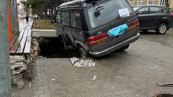 Бездна на парковке: в Новосибирске под микроавтобусом появился огромный провал