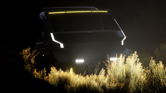 На втором аналогично затемнённом тизере запечатлена ещё одна новинка для выставки SEMA. Судя по видимому силуэту передней части, он не является версией какой-либо из имеющихся серийных моделей. На снимке можно увидеть однообъёмник с изогнутыми вертикальными линиями ходовых огней, между которыми находится логотип, смещённый от центра. На крыше видна тонкая жёлтая полоска светодиодов, а ближе к нижней части можно увидеть расположенные горизонтально крупные пиксели фар.
