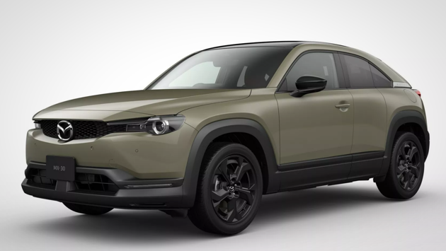 MX-30 Retro Sports Edition положены три новых оттенка кузова, включая хаки. Они сочетаются с черными элементами экстерьера — боковыми зеркалами и колесными дисками.