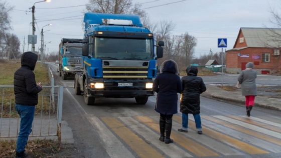 Пока жители слушали в свой адрес «комплименты», один из грузовиков вырулил на тротуар. Но его успели остановить, поэтому пришлось разворачиваться и уезжать.