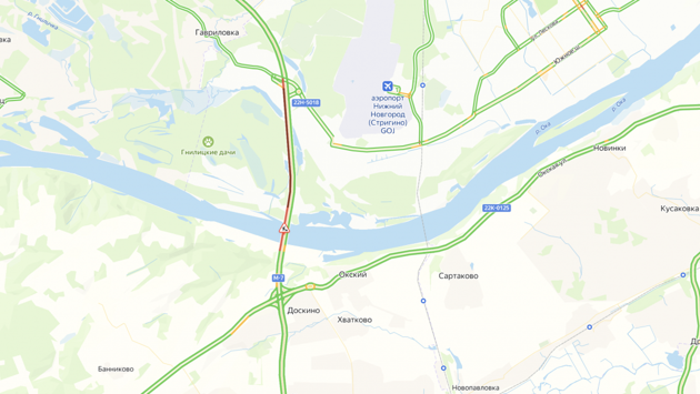 Огромная пробка образовалась на трассе М-7 перед Стригинским мостом