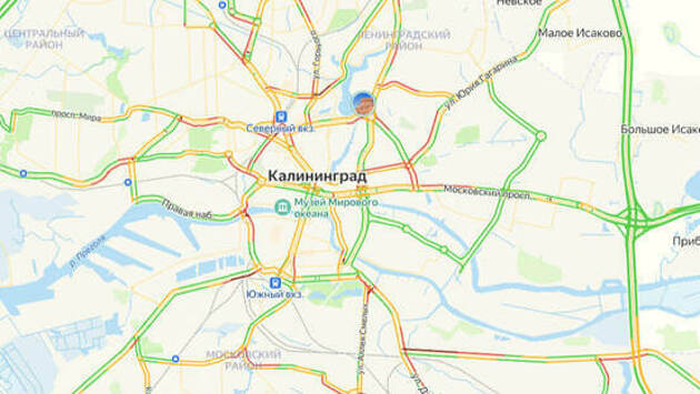 Калининград утром в четверг, 7 ноября, встал в пробках. Об этом говорят данные сервиса «Яндекс.Карты».