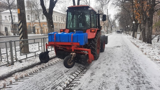 С наступлением холодов «Зеленстрой» и подрядные организации развернули борьбу с гололёдом. Работы ведутся круглосуточно: специалисты обрабатывают покрытия дорог и тротуаров жидкими хлоридами и галитом — технической солью, выполняют ручную уборку как днём, так и ночью, чтобы обеспечить безопасность горожан. Техника проходит по тротуарам, где трактора со щётками убирают наледь и снег, а пескоразбрасыватели покрывают поверхности противогололёдными средствами.