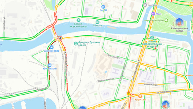 Два ДТП и километровые заторы: карта пробок в Калининграде на утро пятницы