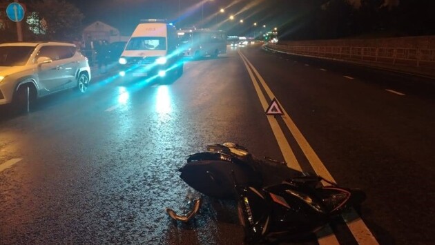 Мопедист без прав не справился с управлением и разбился на мокрой дороге в Сочи