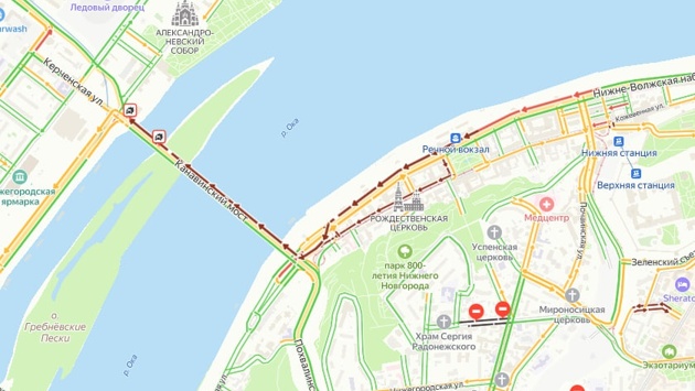 Заторы образовались на Канавинском мосту в направлении Заречной части Нижнего Новгорода вечером 21 ноября. Об этом свидетельствуют данные сервиса «Яндекс. Карты».