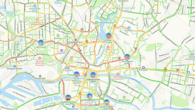 Калининград днём в субботу, 23 ноября, во время снегопада встал в 8-балльных пробках. Об этом говорят данные сервиса «Яндекс.Карты».Движение затруднено на основных магистралях города, особенно на ул. Фрунзе, Железнодорожной, проспекте Мира, а также в районе перекрёстка Озерова и Горького. Сообщается о шести ДТП.