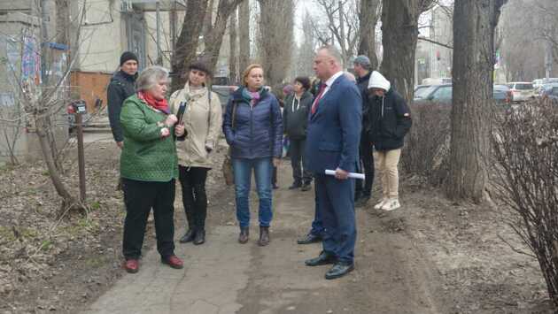Вице-спикер горДумы Олег Черкасов провел встречу с активистами возле их дома при участии заместителя руководителя управы Левобережного района Максима Жукова.