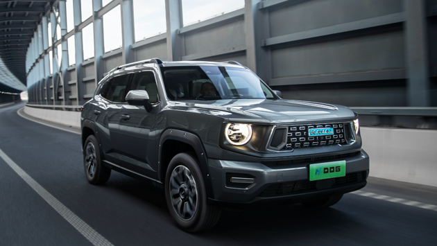 Это внедорожник с брутальным дизайном в стиле Dargo (он же Big Dog), вставший на конвейер в Китае около двух лет назад. Габаритами он сопоставим со Skoda Kodiaq и построен, как и Дарго, на платформе L.E.M.O.N. В составе подзаряжаемой гибридной установки — 1,5-литровый турбомотор и двухступенчатая гибридная трансмиссия DHT. Общая отдача составляет 326 лошадиных сил. Установка может работать как в параллельном, так и в последовательном режиме, расходуя «по паспорту» 1,8 литра на 100 километров.