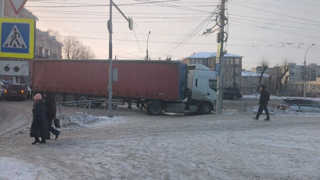 Авария произошла на перекрёстке Станиславского и Котовского. Предположительно, водитель фуры пытался повернуть с Котовского в сторону площади Труда, когда в его прицеп въехал Subaru Forester.