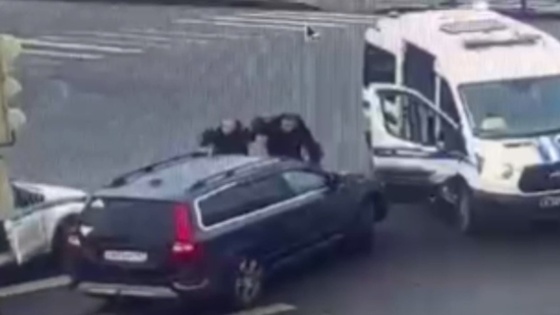 Судя по опубликованным кадрам, в какой-то момент погони машина полиции смогла перерезать путь нарушителю, однако он проигнорировал выскочивших сотрудников и уехал, чуть не сбив правоохранителей.