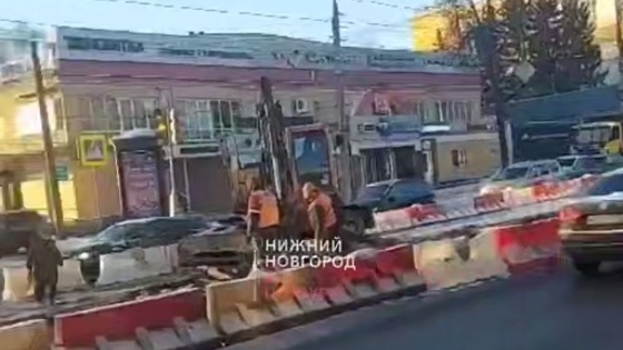 На опубликованных кадрах видно, что люди вынуждены переступать через заграждения, поскольку иных вариантов перехода на другую сторону улицы у них нет. При этом рабочие возмущаются и обращают внимания на ограничения.