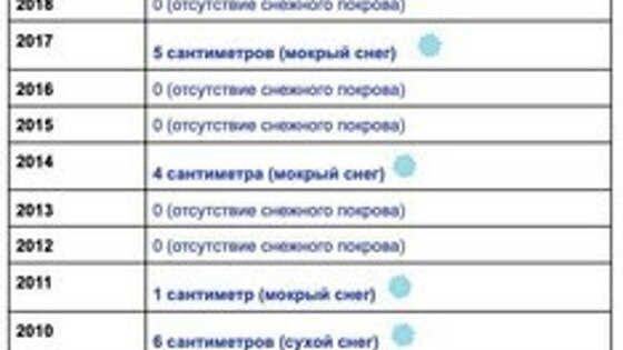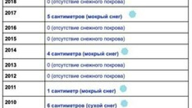 При этом, в последние годы тенденция гораздо хуже. Но поскольку данные по наличию или отсутствию снега в Калининграде формируются на основе измерений на городской метеостанции в 8:00 31 декабря каждого года, то можно смело утверждать, что в других районах области показатели могут отличаться.