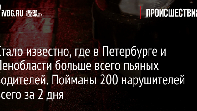 В Санкт-Петербурге и Ленинградской области 7 и 8 декабря проводился рейд «Нетрезвый водитель». Правоохранители выявили около 200 нарушителей, сообщает Neva.Today. Большую часть пьяных автомобилистов выявили в Кировском и Красногвардейском районах Санкт-Петербурга, а также во Всеволожском районе 7 и 8 декабря. К административной ответственности за управление транспортным средством в состоянии опьянения привлекли 102 водителя. Еще 89 автомобилистов отказались от медицинского освидетельствования. Их привлекли по статье 12.26 КоАП РФ (невыполнение водителем транспортного средства требования о прохождении медицинского освидетельствования на состояние опьянения). Нарушителей ждет штраф, а также лишение водительских прав на полтора-два года. Более серьезное наказание ожидает 14 автомобилистов, которых не в первый раз задержали в нетрезвом состоянии. В отношении них завели уголовные дела по статье 264.1 УК РФ (управление транспортным средством в состоянии опьянения лицом, подвергнутым административному наказанию или имеющим судимость).