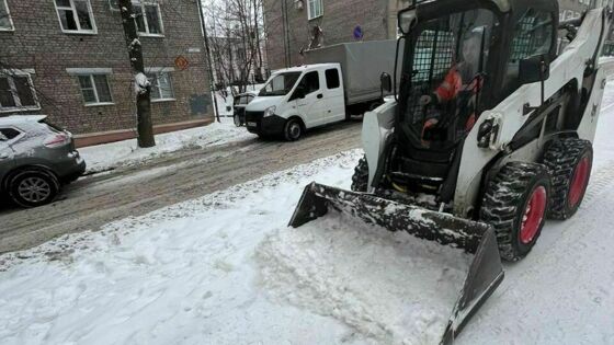 После обработки реагентами сформированные колонны сметали снег с магистральных улиц. Специалисты ручного труда расчищали остановки и подходные пути к пешеходным переходам. Сейчас ведется расчистка улиц на всю ширину и вывозится снег.