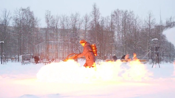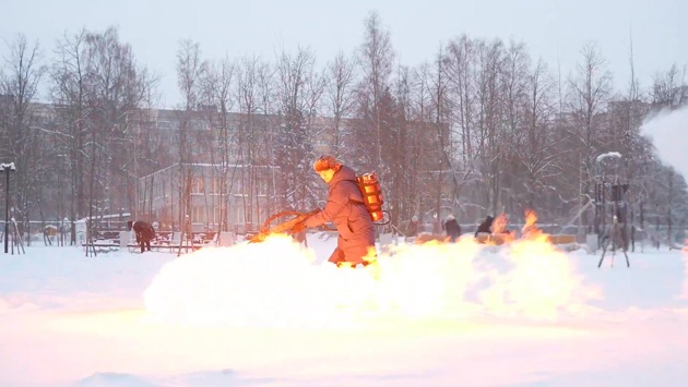В Санкт-Петербурге глава муниципального округа Северный Калининского района Юрий Куликов призвал население и коммунальные службы к слаженной работе. Для этого он взял в руки огнемет и начать растапливать им снег. Видео фаер-шоу с участием муниципального депутата опубликовано на его странице в социальной сети «ВКонтакте».