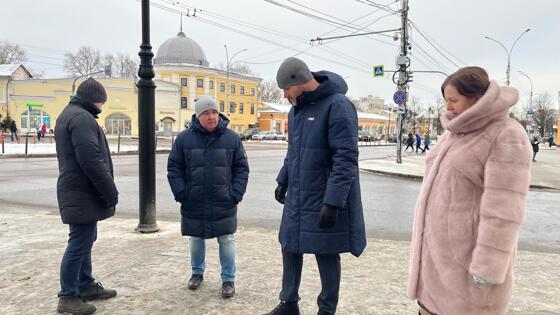 Мэр Вологды проинспектировал уборку улиц и тротуаров центральной части города на проспекте Победы, улице Мира и Торговой площади.