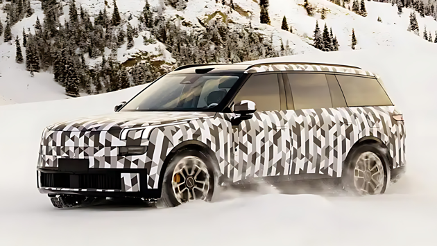 Новинка, в профиль напоминающая Range Rover Sport, получила слегка наклоненную крышу и темные стойки крыши, скрытые дверные ручки и монофонарь, спрятанный под полосой камуфляжа. Также у L946 лидар на крыше и оранжевые тормозные суппорты.