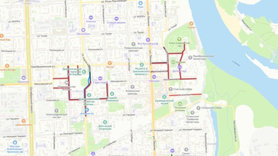- на ул. Московской от ул. Казанской до ул. Набережной Грина;