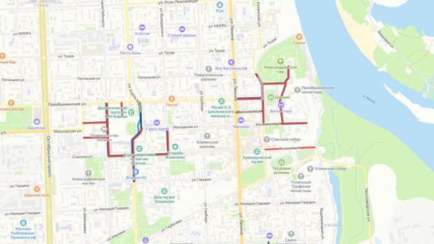 - на ул. Преображенской от ул. Ленина до ул. Казанской;