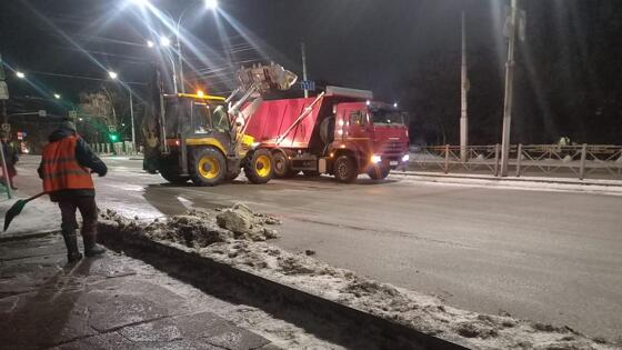 Ночью в усиленном режиме работали 15 комбинированных дорожных машин, восемь МТЗ, семь тракторов, два «полара», фронтальный погрузчик, экскаватор, 17 самосвалов и четыре человека на ручной уборке.