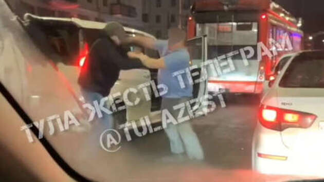 В Туле дорожный конфликт двух водителей закончился их дракой посреди проезжей части. Об этом сообщает Telegram-канал "Тула Жесть", в распоряжении которого есть видео драки от очевидца. Инцидент произошел 10 января на Первомайской улице. Что стало причиной ссоры, свидетель не уточнил. На кадрах двое мужчин - один в голубой футболке, другой в черной куртке оставили водительские сиденья, чтобы решить спор кулаками. В пресс-службе городской полиции инцидент пока не комментировали. До этого в Новосибирске конфликт водителей на дороге перерос в драку и попал на видео. По словам очевидцев, водителю Fiat Ducato не понравилось, как сосед на Nissan Teana подрезал его. На кадрах видно, как водитель фургона покидает авто и бросается на оппонента с кулаками, пытаясь вытащить его из салона на улицу.