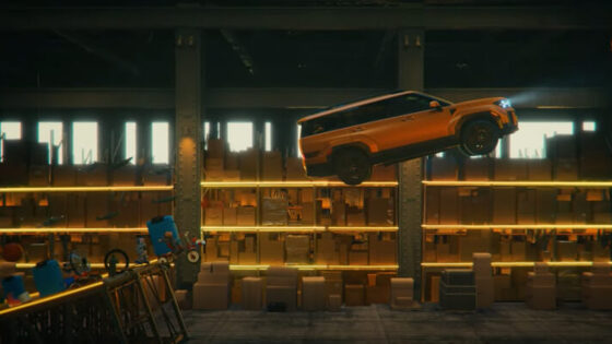 В рамках рекламной кампании Amazon запустил видеоролик, в котором показал, что выбрать автомобиль стало также легко, как любую другую игрушку. А забрать покупку можно у ближайшего дилера. Действие сюжета происходит на складе Amazon, где Hyundai Santa Fe соревнуется с другими товарами по скорости доставки клиентам.