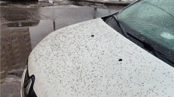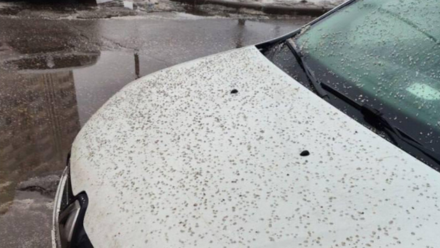 На размещенных в сети кадрах видно, что капот машины москвича полностью засыпан реагентом. Вероятно, это сделали коммунальные службы. Причина неизвестна.