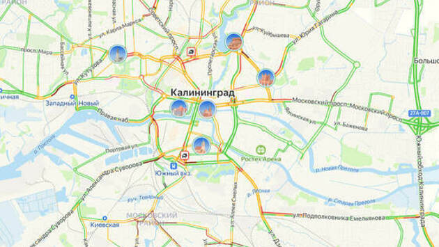Ситуация — 7 баллов: карта пробок в Калининграде на утро вторника