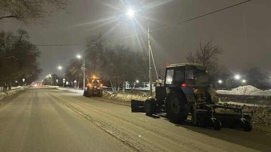 Этой ночью спецтехника подметала проезжие части и тротуары, расширяла обочина и выполняла противогололедную обработку.