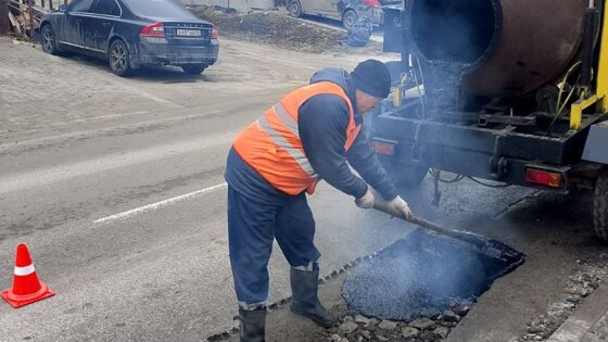 Курские дорожники убирают улицы и латают ямы на проезжей части