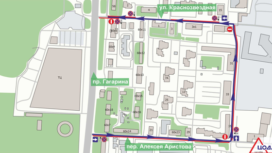 Кроме того, на этом участке будет запрещено останавливаться и парковаться на правой стороне дороги по направлению движения транспорта. На улице Краснозвездной при выезде на проспект Гагарина парковка будет запрещена с двух сторон.