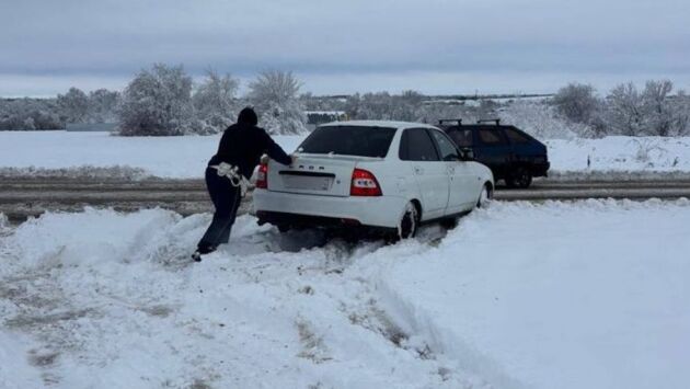 Снегопад осложнил ситуацию на дорогах Ростовской области, снежный накат наблюдается и на региональных трассах.