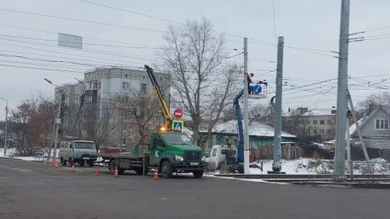 В Курске специалисты ремонтируют светофор на Октябрьской
