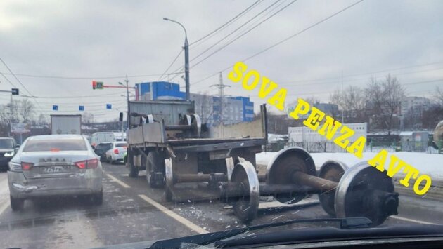 «Трамвай пустили»: в Пензе из прицепа грузовика выпали колесные пары