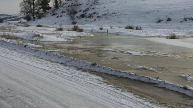 Комиссия, выехавшая на место, зафиксировала выход наледных вод через мост и дорогу. Мост затопило и в данный момент проезд автотранспорта по нему невозможен.