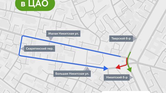 Для улучшения условий проезда на площади Никитские Ворота и в сторону Никитского бульвара, а также для повышения безопасности дорожного движения правый поворот со стороны Тверского бульвара на Большую Никитскую улицу будет запрещен. При этом проезд в сторону Садового кольца будет возможен по Малой Никитской улице.