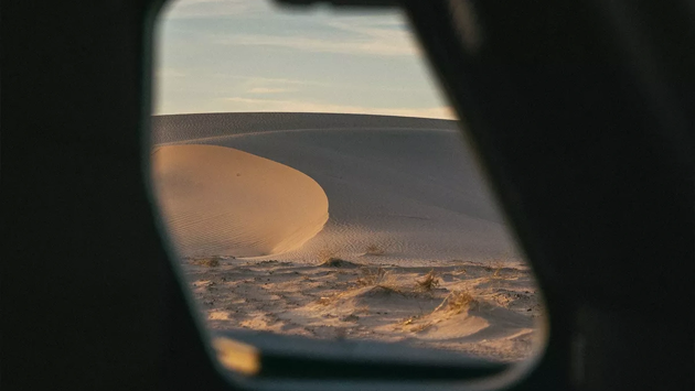 На втором тизере видна часть кузова, принадлежащая, возможно, R1T или R1S. Остальные изображения отвлеченные: на одном видны следы в пустыне, на другом — торчащие из песка шипы.