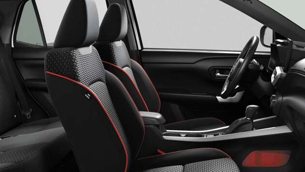 Он оснащен трехцилиндровым 87-сильным атмосферным двигателем объемом 1,2 литра и вариатором. Комплектация включает черную тканевую отделку с красной прострочкой, цифровую панель приборов, бесключевой доступ, камеру кругового обзора, адаптивный круиз-контроль, кожаный мультифункциональный руль и т.д.