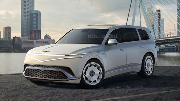 Недавно в Сети появились фотографии первых замаскированных прототипов будущего флагманского кроссовера корейского премиум-бренда, и мы решили представить, как будет выглядеть новинка.