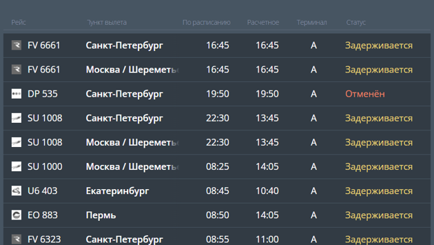 В частности, задержки как на прилет, так и на вылет коснулись таких направлений, как Москва, Петербург, Екатеринбург, Пермь, Иваново.