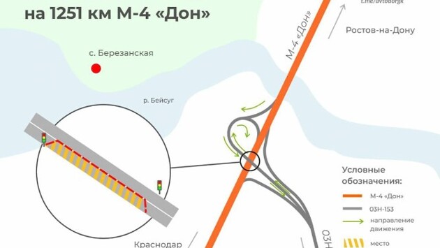 На трассе М-4 «Дон» в Краснодарском крае до ноября 20025 будет действовать реверс
