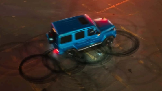 Так, на странице бангладешского представительства Audi в социальных сетях появилось изображение Mercedes-Benz G580, который способен выполнять разворот на месте. На асфальте от движения электромобиля остались четыре следа, образовавших логотип Audi в виде четырёх колец.