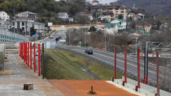 Сейчас дорожники переносят секции путепровода на временные опоры и крепят к ним металлические консоли, что позволит увеличить размеры конструкции. Уже закреплено 24 консоли из 34. По информации компании, путепровод будет открыт для передвижения в обоих направлениях к началу курортного сезона.