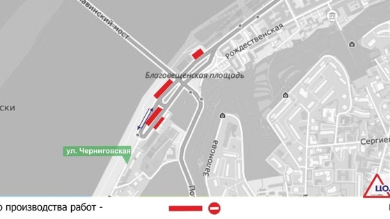 Речь идет об участке на улице Черниговской. Уточняется, что ограничения связаны с проведением ремонта. На период проведения работ в каждом направлении выделили по одной полосе для проезда транспорта.