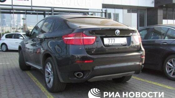 Такие данные регистрационного учёта есть в распоряжении информагентства "РИА-Новости". У автомобиля BMW X6, как видно на фото, "красивый" госномер - с тремя семёрками. Самый дешевый ценник на новый BMW X6, который нам удалось найти в интернете - 16 млн. 990 тысяч рублей.