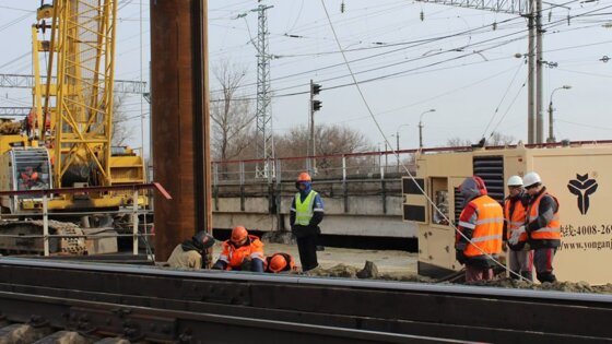 Железнодорожники постоянно контролируют процесс. Строительство ведется только в «окна», когда по участку не проходят составы (в сутки бывает около 30 поездов).