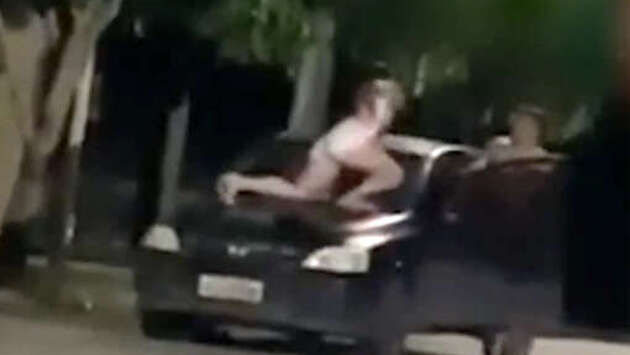 В Бразилии жена не дала мужу похитить дочь, бросившись на машину