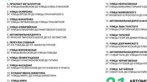 Среди объектов — комплексный ремонт улицы Металлургов на участке от улицы Каховской до улицы Алма-Атинской. На этой улице дорожники обновят проезжую часть и тротуары, заменят бортовой камень, устроят газоны.