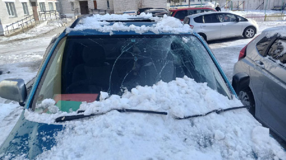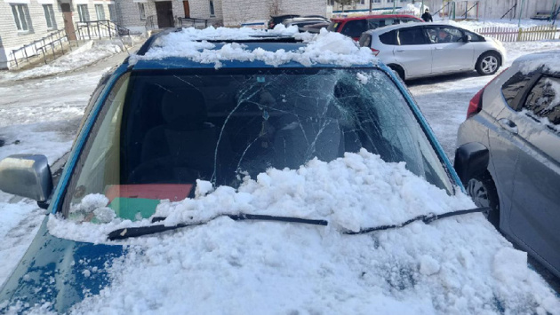 Сообщается, что инцидент произошёл 9 марта. Снег рухнул с дома на ул. Красноармейская, 39, и повредил припаркованный автомобиль многодетной семьи.